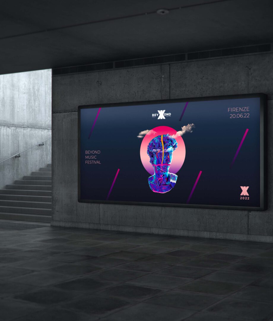 Beyond music festival. Progetto personale di realizzazione di un nuovo festival musicale. Per questo progetto è stato creato il brand e tutta la promozione pubblicitaria con grafiche dedicate e personalizzate per qualsiasi tipologia di utilizzo.